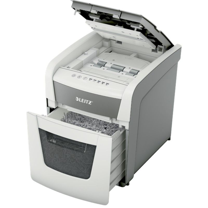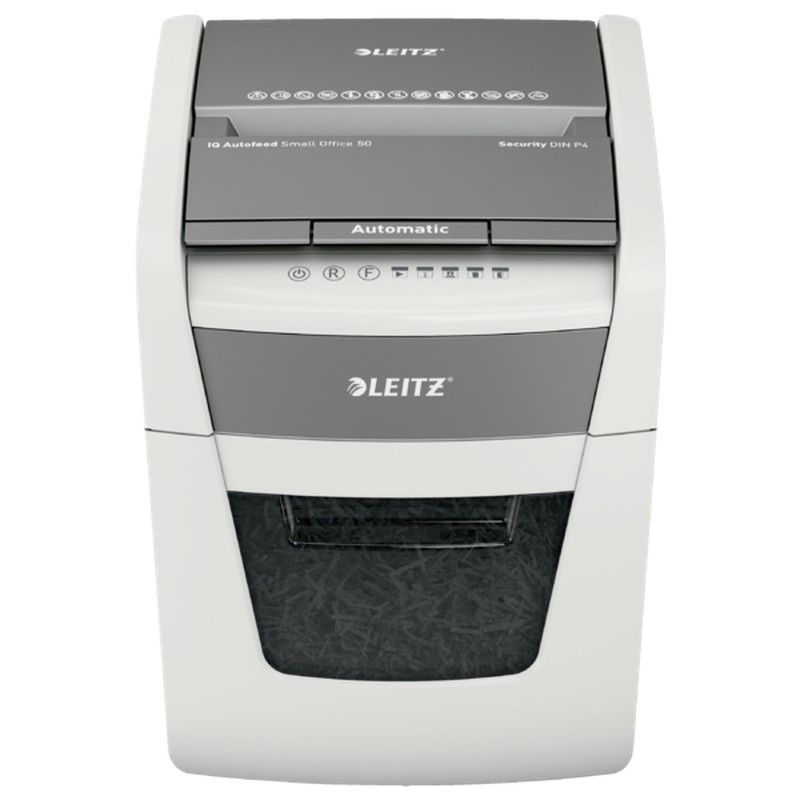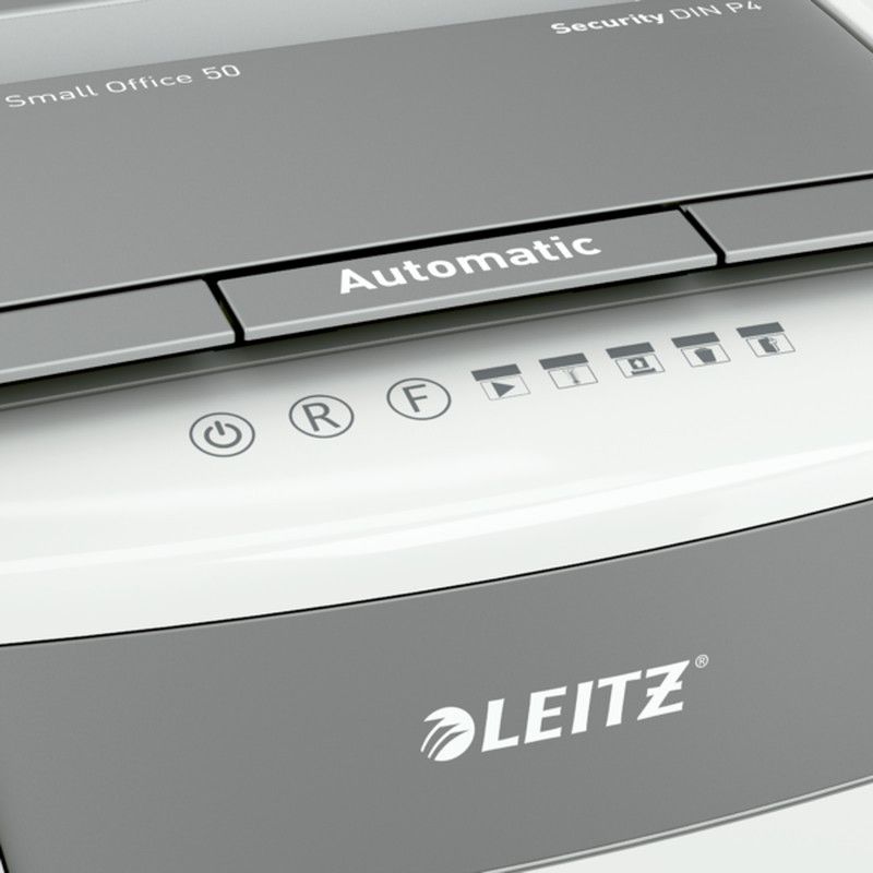 2 + 1 Jahr Garantie - Registrieren Sie sich, um ihr zusätzliches Garantiejahr zu erhalten Autofeed-Funktion für 50 Blatt A4, manueller Papiereinzug für bis zu 6 Blatt (80 g/m²) Infrarot-Sensoranzeige für vollen Abfallbehälter. Sehr leiser Betrieb - für eine ruhige Arbeitsumgebung (bei regelmäßiger Verwendung von Leitz Ölblättern). Anti-Papierstau-Technologie für kontinuierliches Schreddern - stoppt automatisch und führt das Papier zurück, wenn zu viel eingelegt worden ist. Kontinuierliche Laufzeit von 10 Minuten, sodass die maximale Blattanzahl der Papierkammer in einem Durchgang geschreddert werden kann. Sicherheitsstufe DIN P4 Partikelschnitt (4x30 mm) Kompakter herausziehbarer Abfallbehälter mit 20 Liter Fassungsvermögen, um den gesamten Inhalt der Papierkammer in einem Durchgang zu schreddern. Touch Control: Einfach und intuitiv zu bedienen. Schreddert auch Kreditkarten, Heft- und Büroklammern. 2 + 1 Jahr Garantie - Registrieren Sie sich, um ihr zusätzliches Garantiejahr zu erhalten